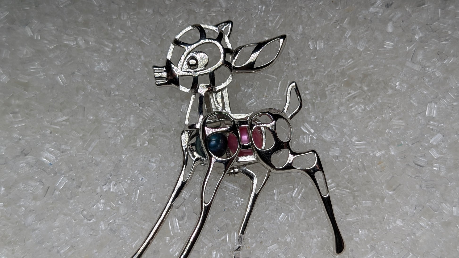 This amazing cage hold 2 pearls within the body. The pendant is quite large as a whole but the pearls one fit on the body.