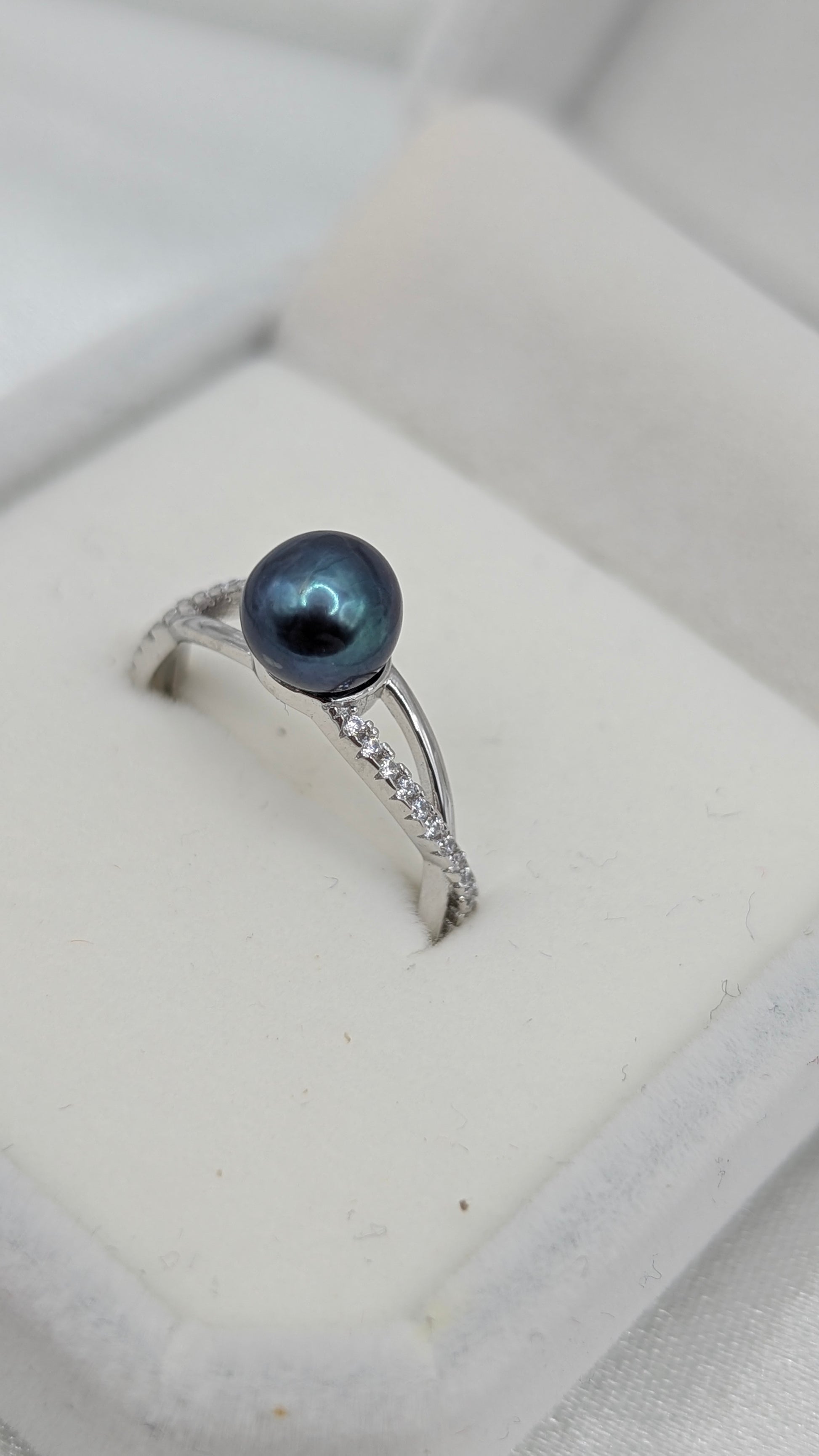 Deep ocean blue pearl ring