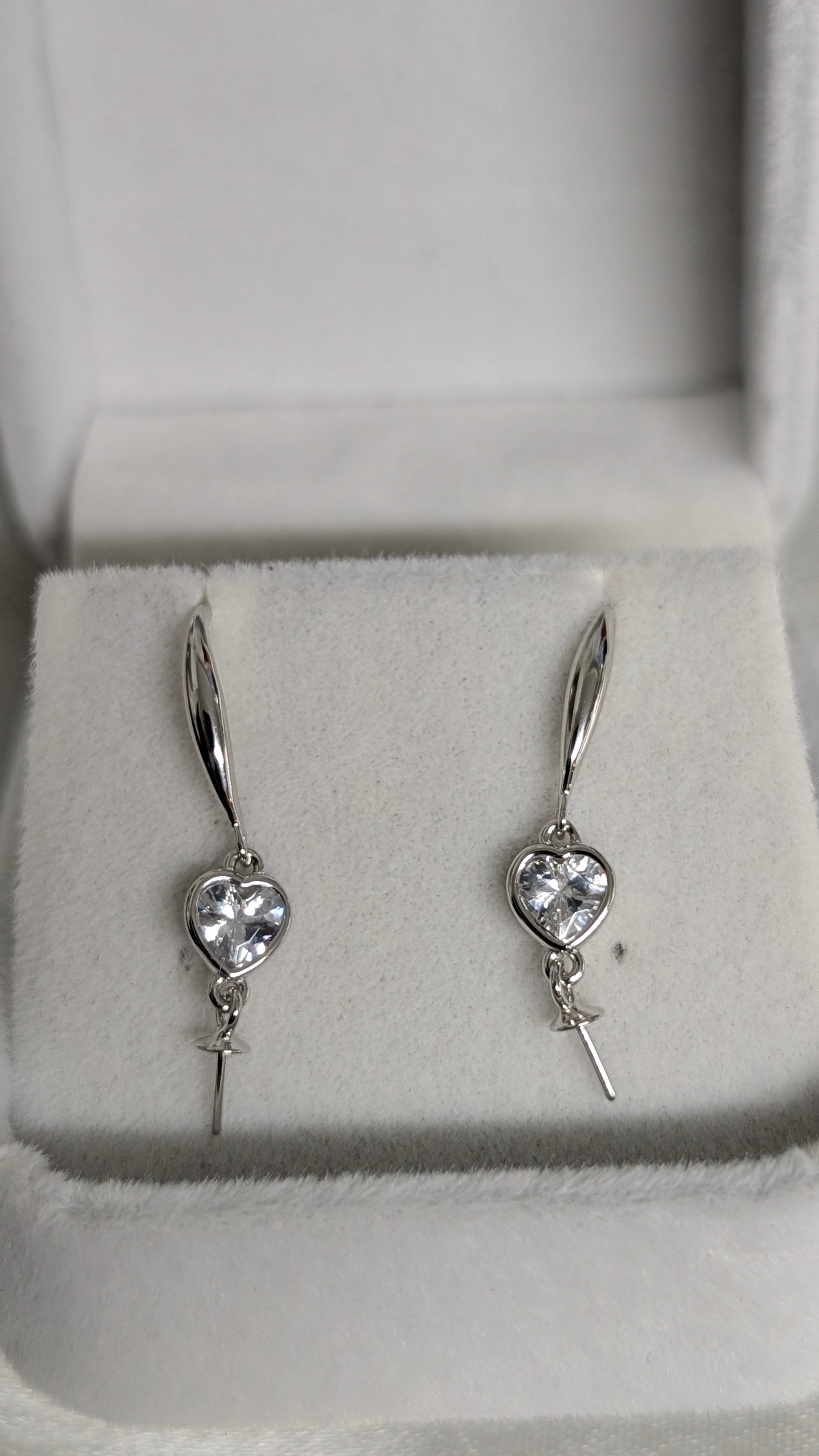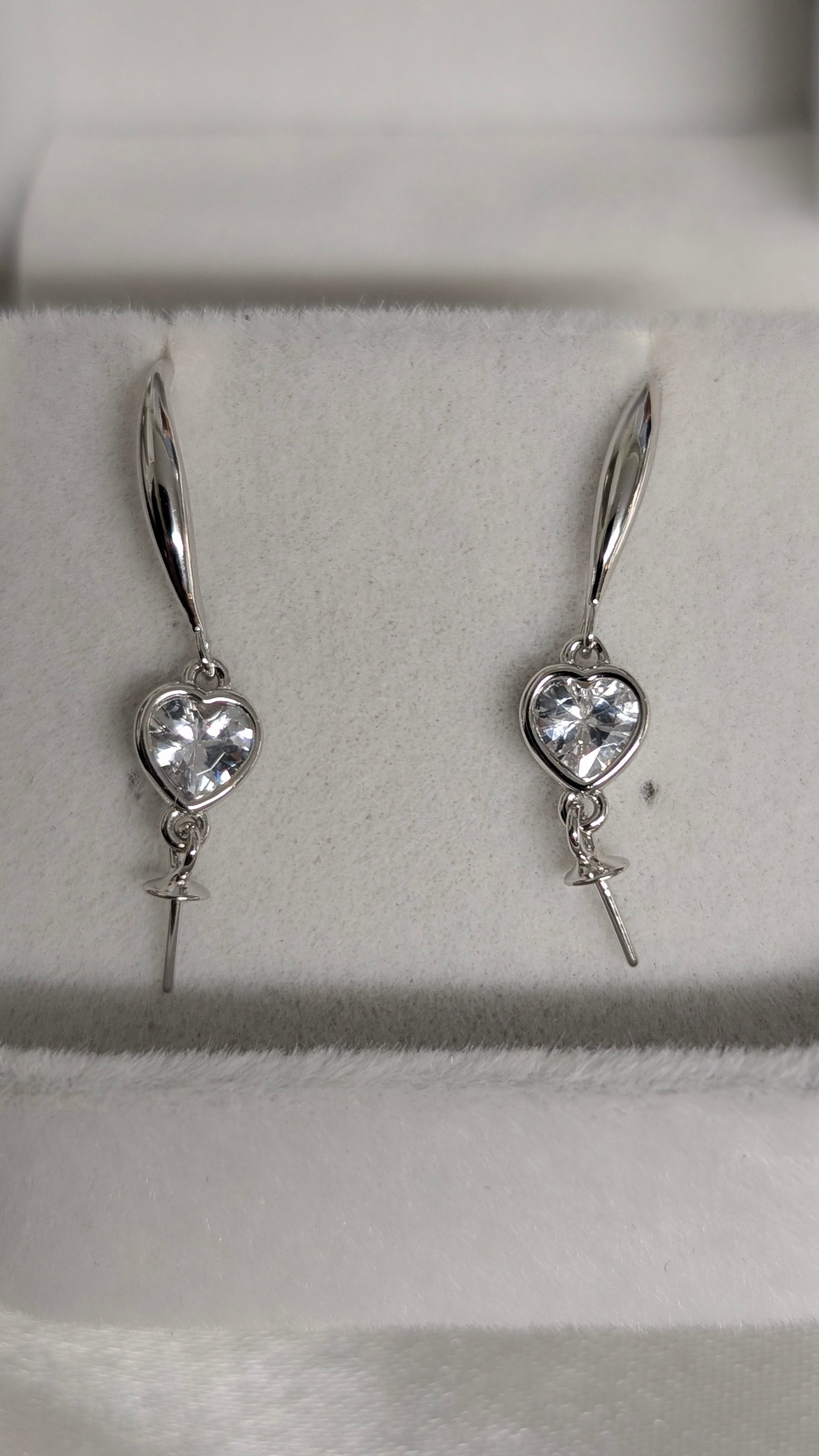 Made with sterling silver and a cubic zirconia mounted within each of the dangling heart. your twin pearls with just dangle awaya the bottom