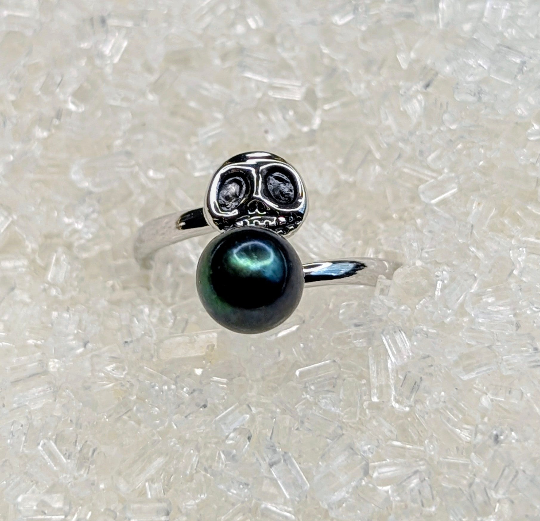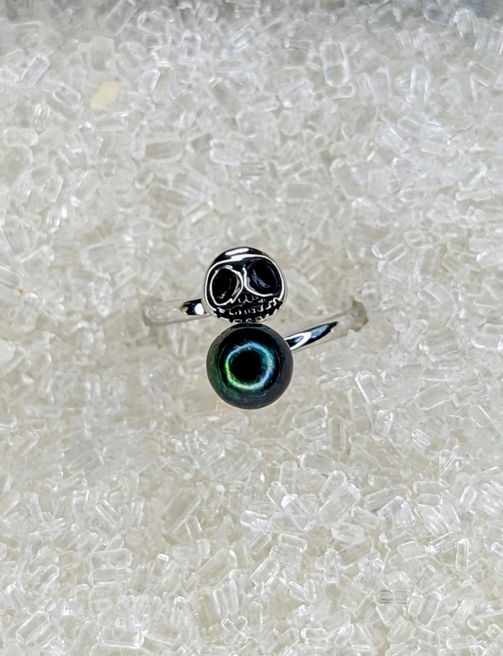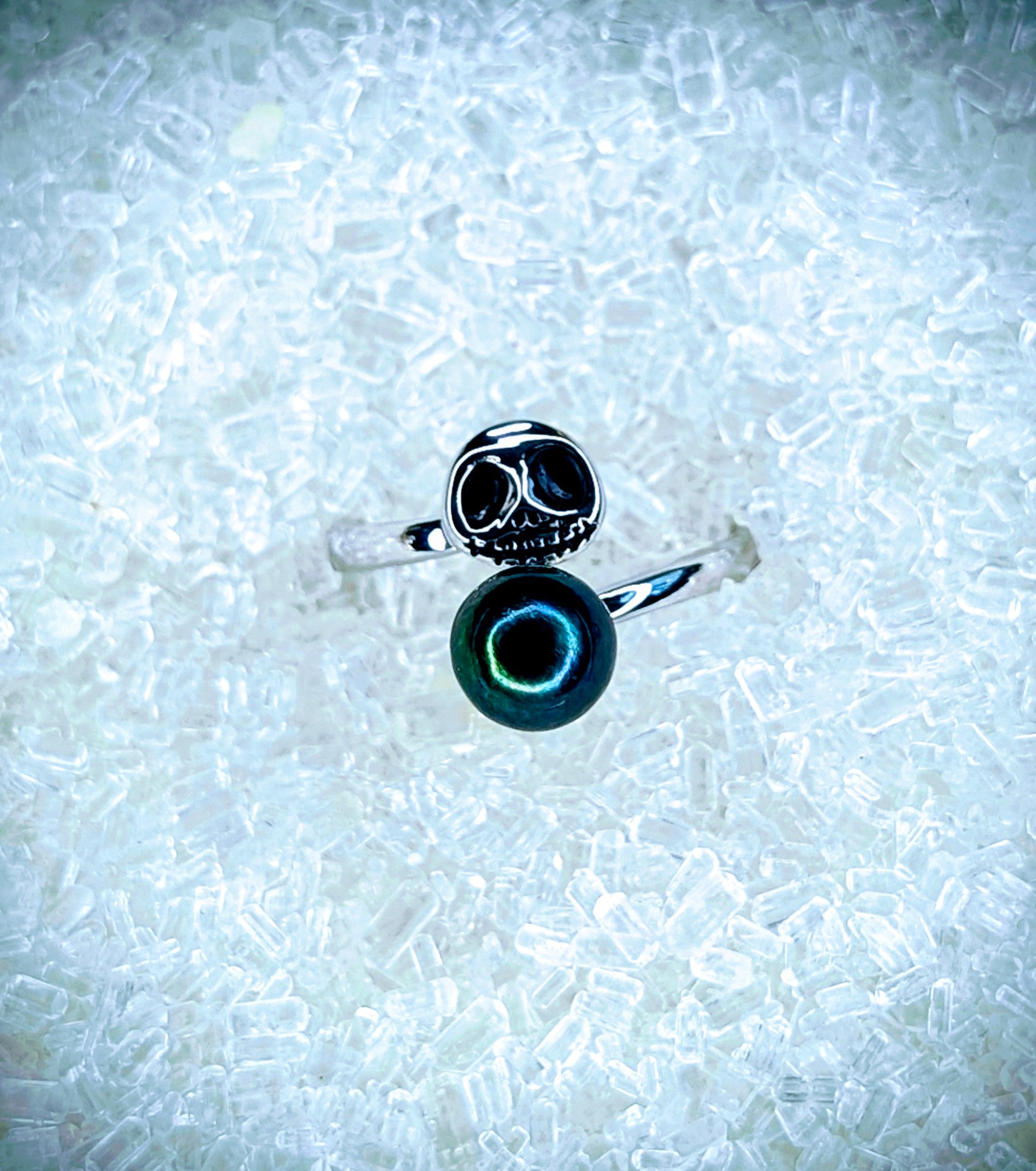 Bring a touch of spooky charm to your style with this Jack pearl ring. Featuring an adjustable band, it fits comfortably on any finger, making it as versatile as it is eye-catching. Perfect for fans of quirky elegance, this ring adds a playful twist to your everyday looks.