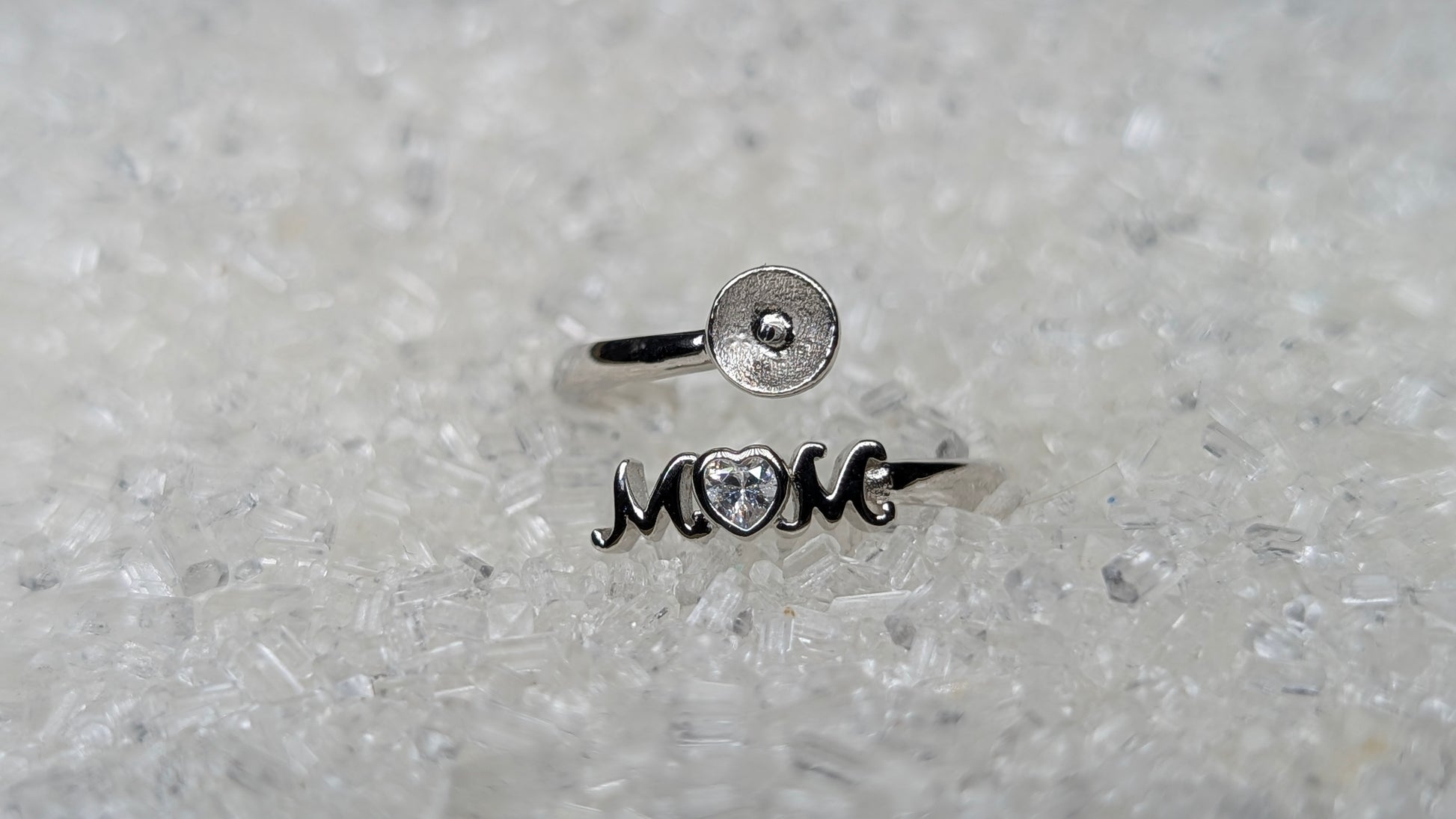 This sterling silver ring holds your chosen pearl beautifully under the word Mam, mom,mum. Perfect gift to show any mother just how much they mean to you.