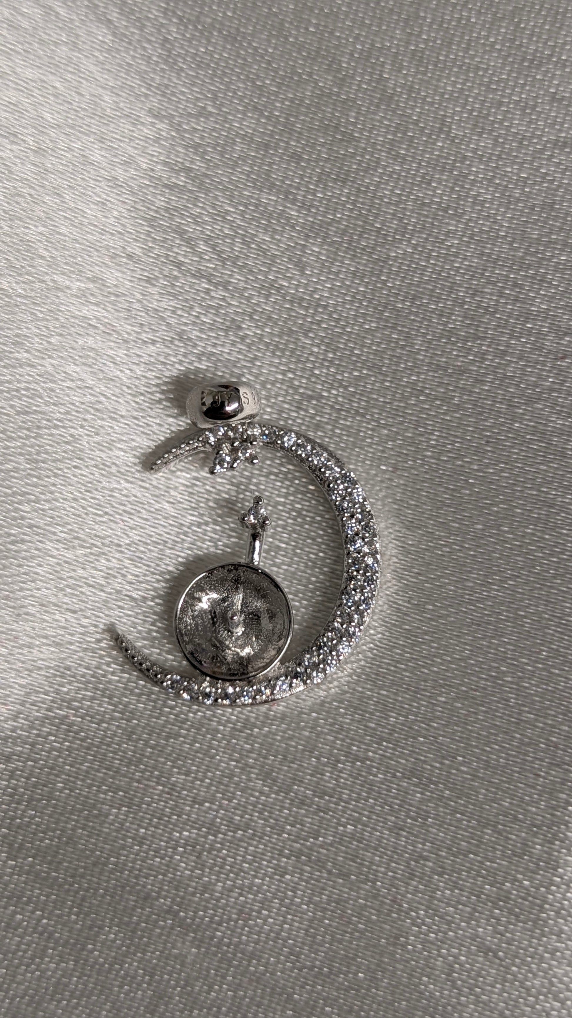 This sterling silver pendant adds sparkle wherever it goes and will fit small Edison's however some of the bottom of the moon crescent may be covered with an edison