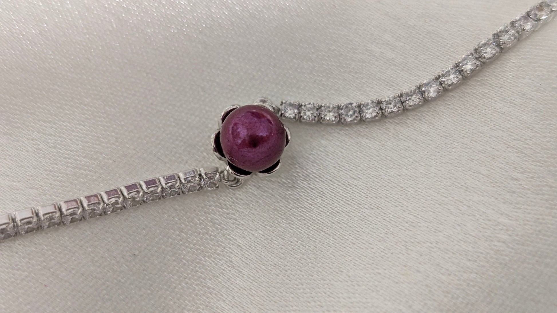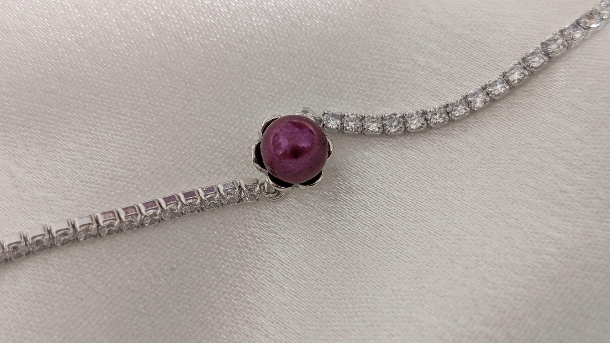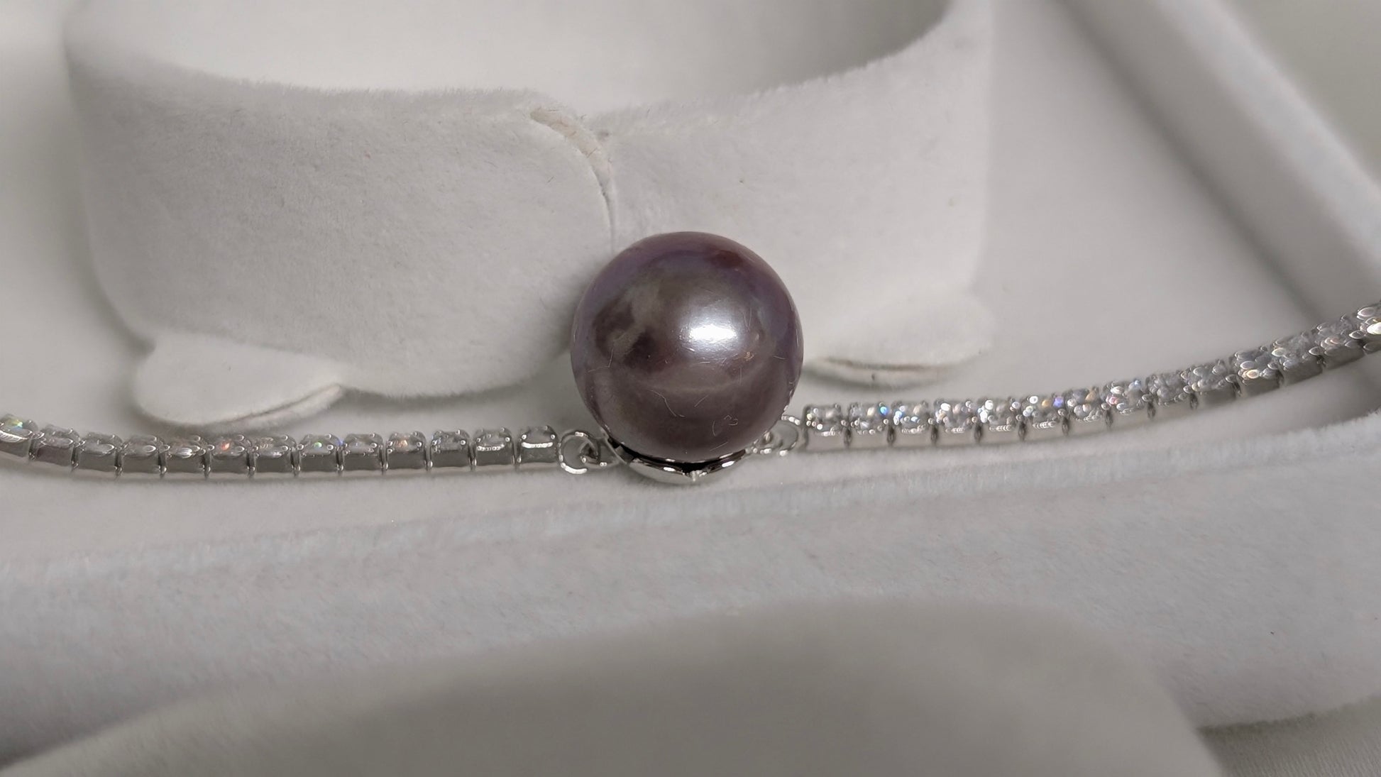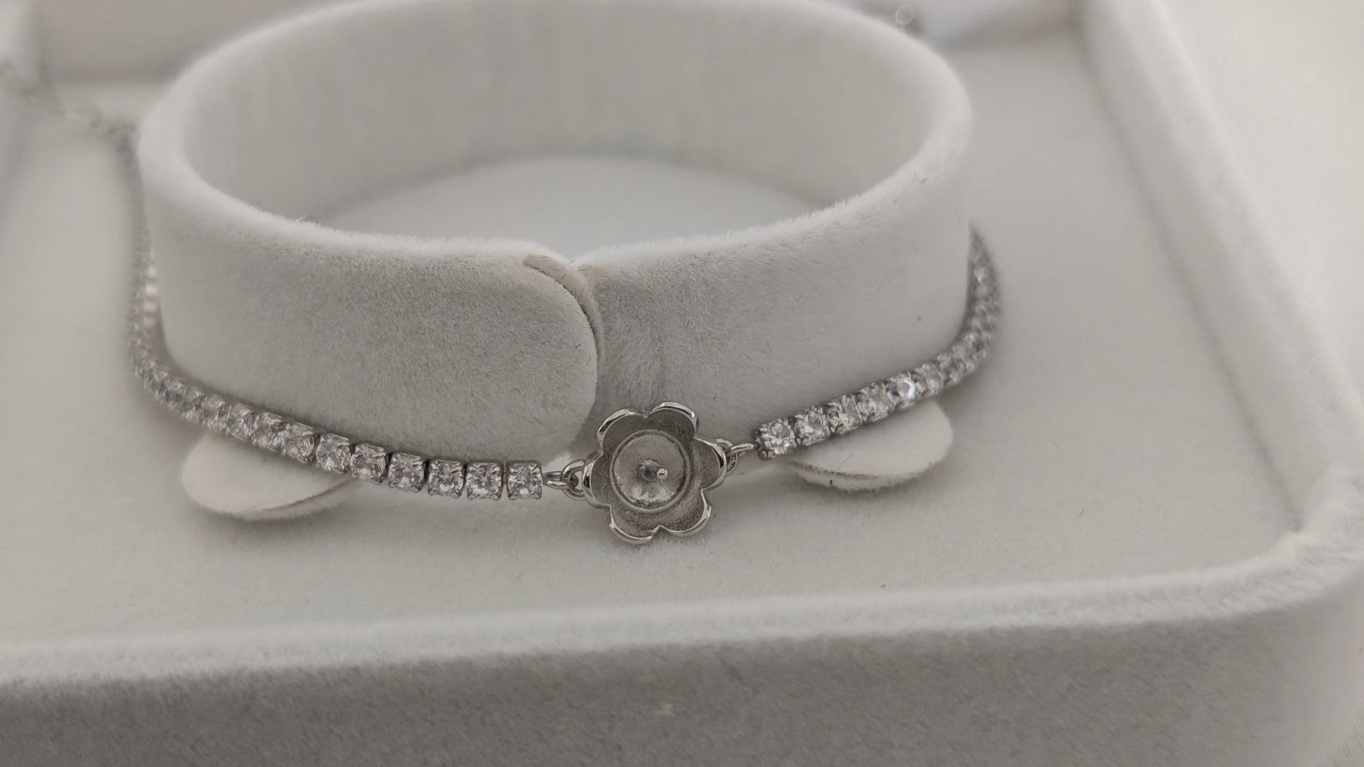 This stunning sterling silver bracelet is perfect for both round and Edison pearls the choice is yours. Its it inlaid all the way around with zirconias for that extra sparkle. Due to it being a bracelet and bring in a busy area of the body I wouldn't recommend a larger Edison.