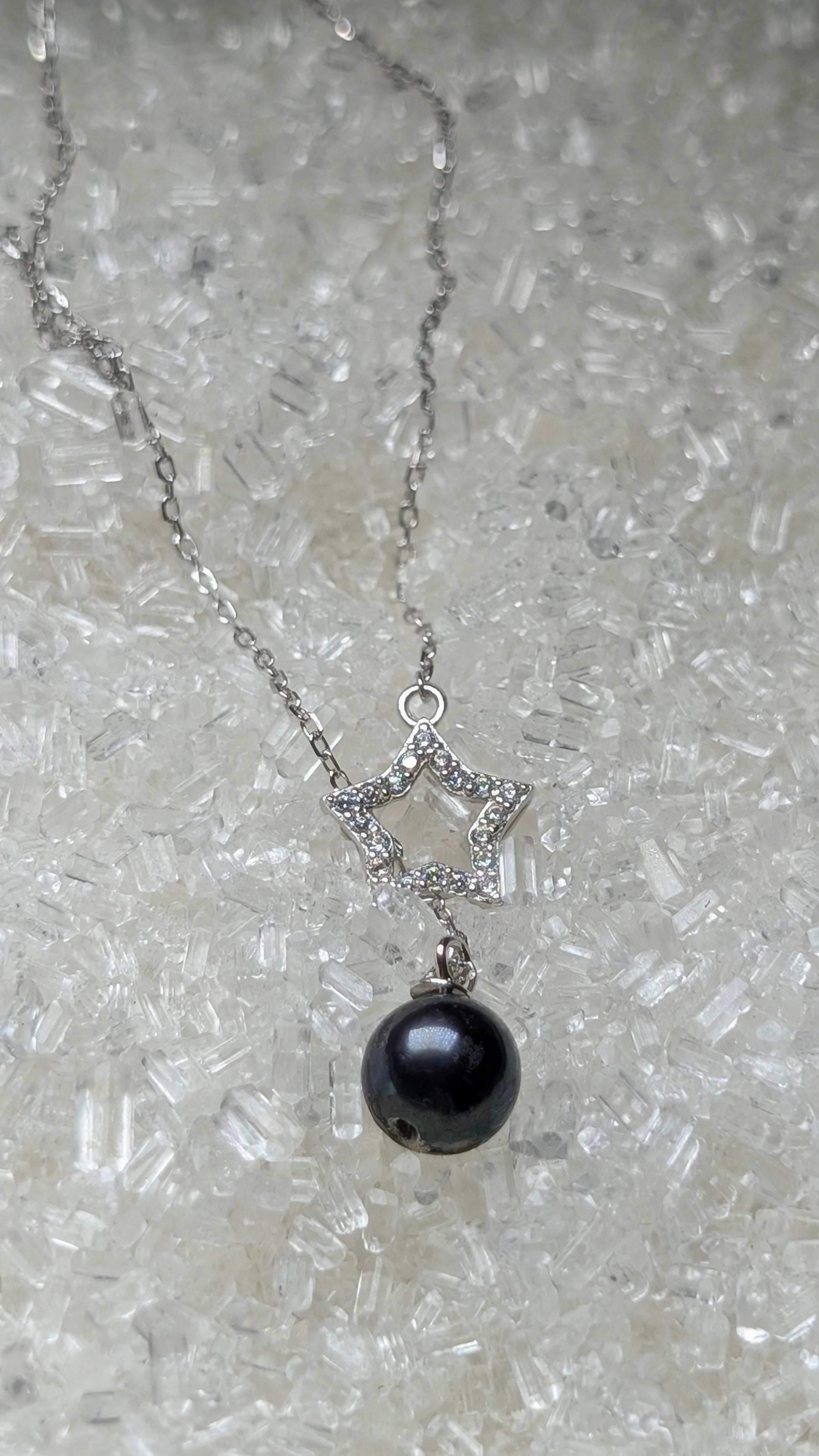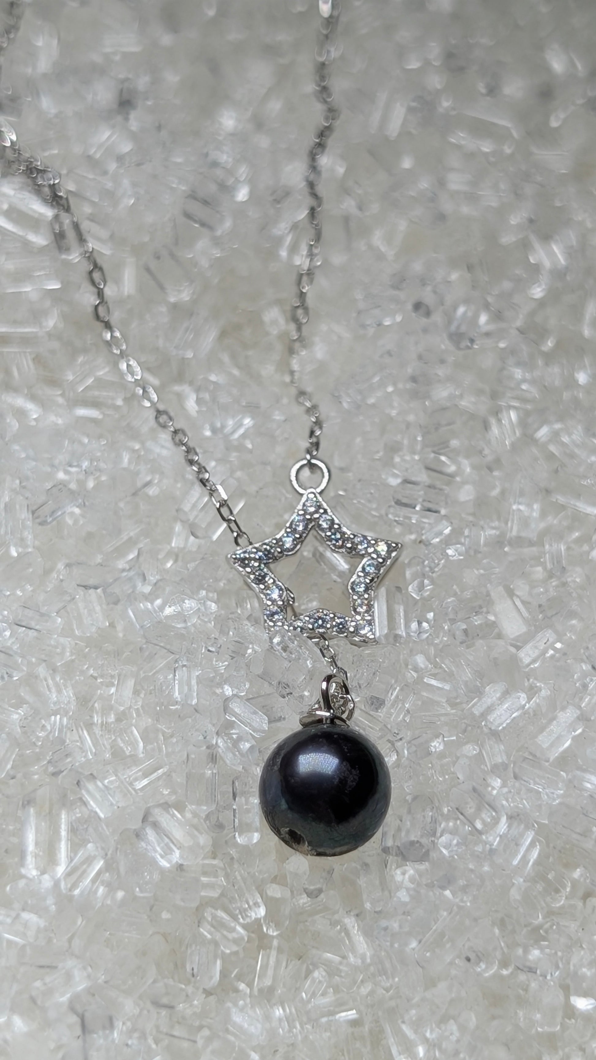 Your chosen pearl will dangle from this sparkly star and the dangle can be adjusted to be longer or shorter so it fits just perfects.